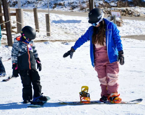 Instructors will guide the lesson; parents can watch from the sidelines but should not join on the snow.